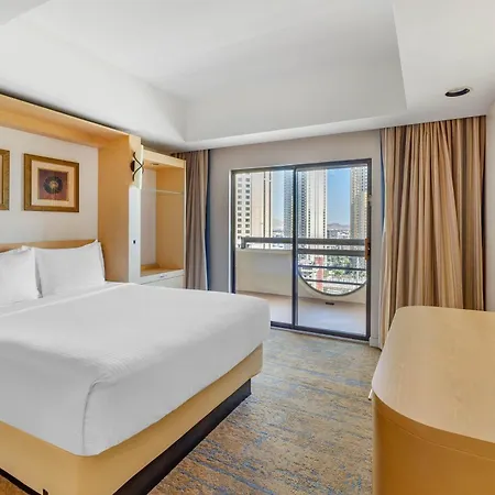 Este hotel se encuentra justo en el famoso Strip y ofrece suites cómodas con vistas espectaculares de la ciudad y las montañas. Las suites poseen cocina o kitchenette, lo que es ideal para los viajeros que prefieren preparar sus propias comidas. La piscina al aire libre y el spa ofrecen oportunidades para relajarse. Con un personal amable, el Hilton Vacation Club Polo Towers se posiciona como una opción excelente, tanto para viajeros de negocios como para familias.